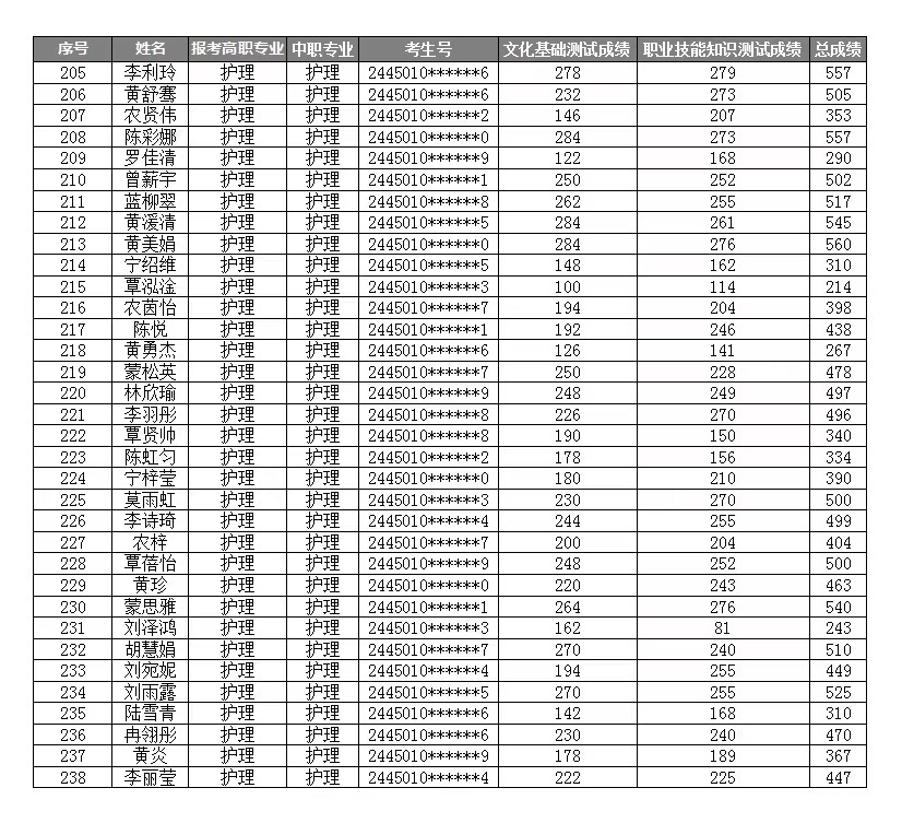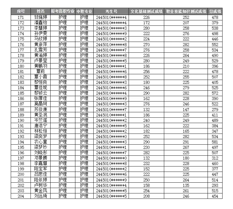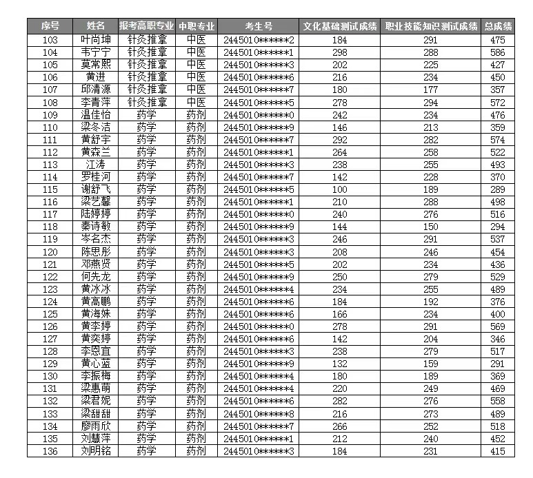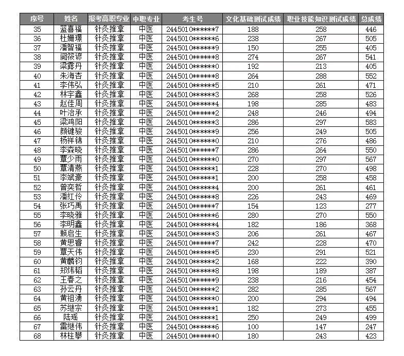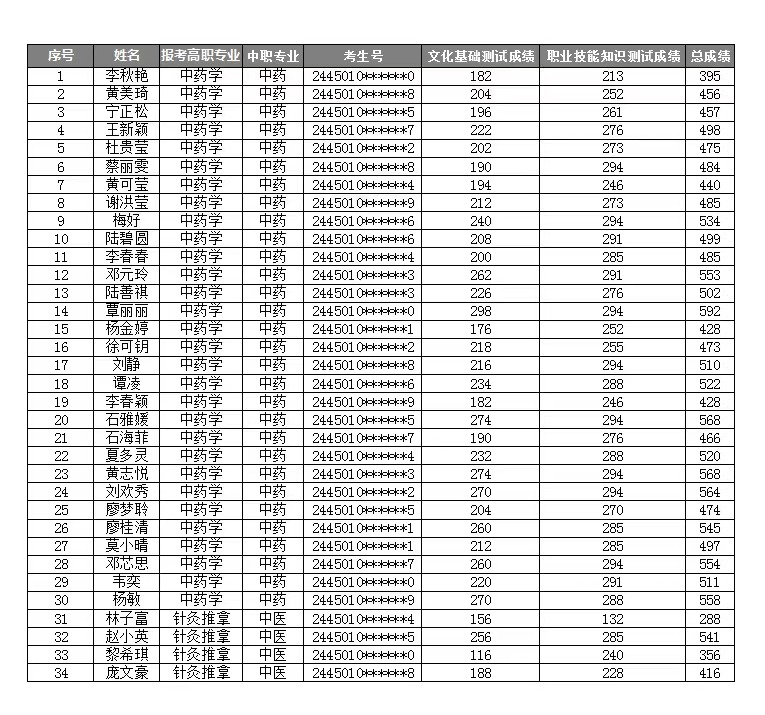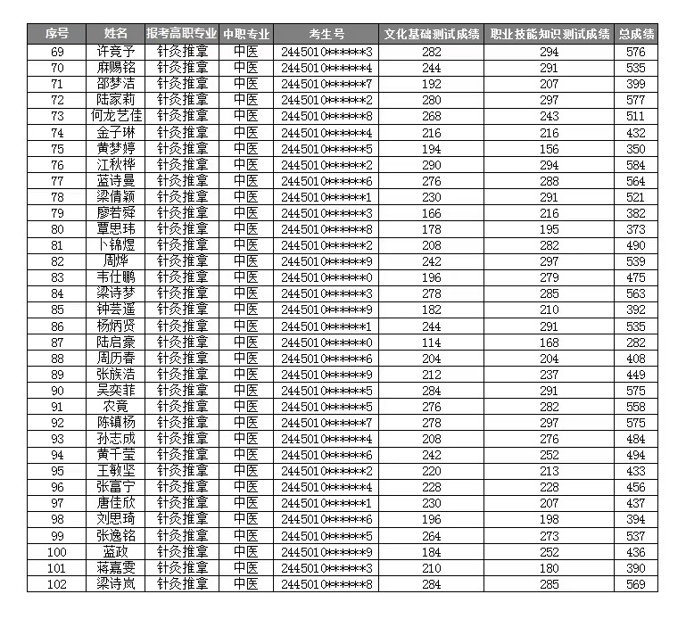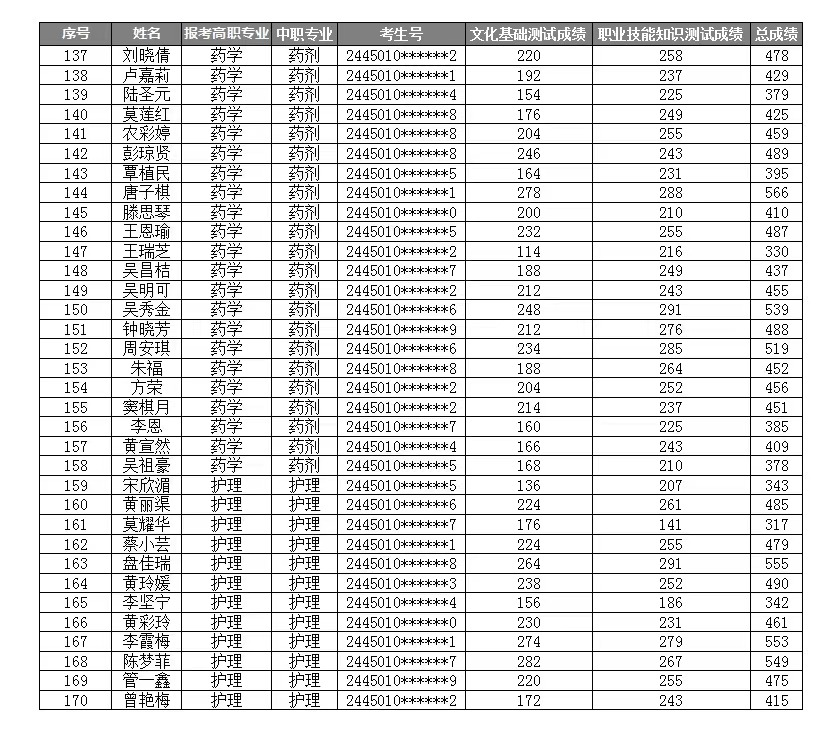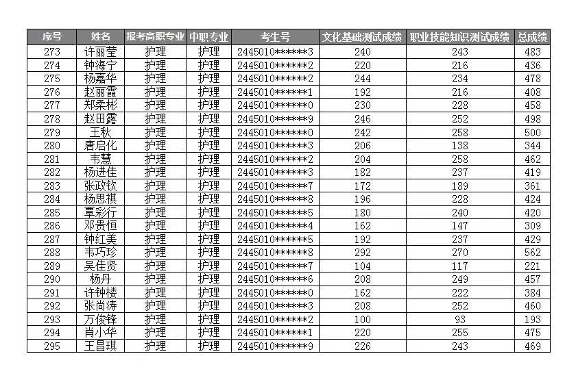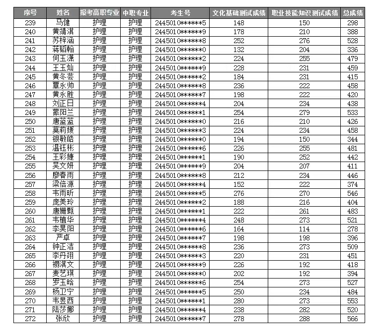 taptap点点体育2024年高职对口中职(“2+3”直升)自主招生考试成绩表