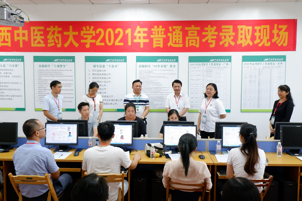 7月17日上午,点点体育校长姚春、党委副书记庞宇舟一行在校办副主任蓝开宝、纪委副书记韦海英、教务处长莫雪妮、学工处副处长吴健文的陪同下到明秀校区2021年高考招生录取现场指导招生工作。