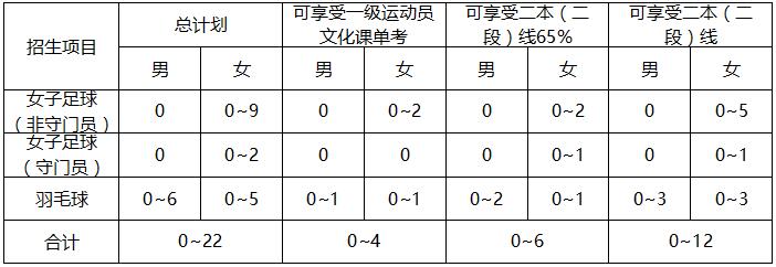 (二)招生计划:点点体育2021年高水平运动队招生总计划为22人,按招生项目具体名额分配如下: