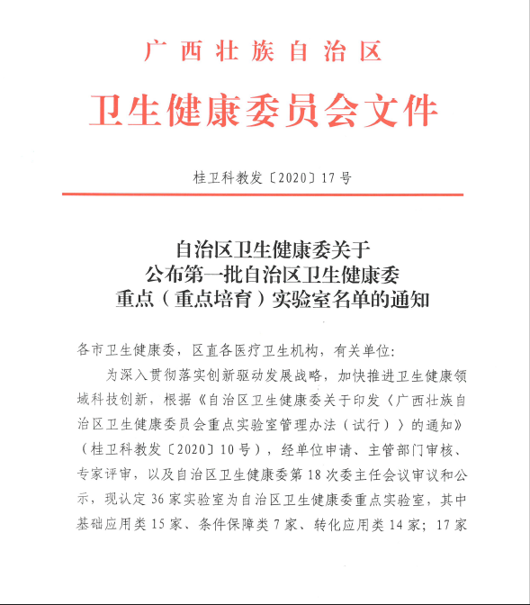 喜讯:广西中医湿病方药理论与转化重点实验室获批为第一批广西壮族自治区卫生健康委重点实验室