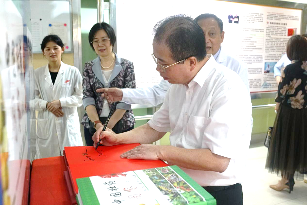 刘中秋一行还实地考察了壮瑶药重点实验室,在副校长冷静、实验室主任朱华的带领下,参观了壮瑶药实验室的展厅。参观期间,朱华简要介绍了壮瑶药重点实验室的基本情况,并且向刘中秋一行展示了壮瑶药理论和实践研究成果、平台获得的科技奖项、中药资源普查标本库以及实验室产品兰香草精油等。刘中秋对平台成果给予高度评价,同时对民族药的研究以及学科建设提出了宝贵意见。