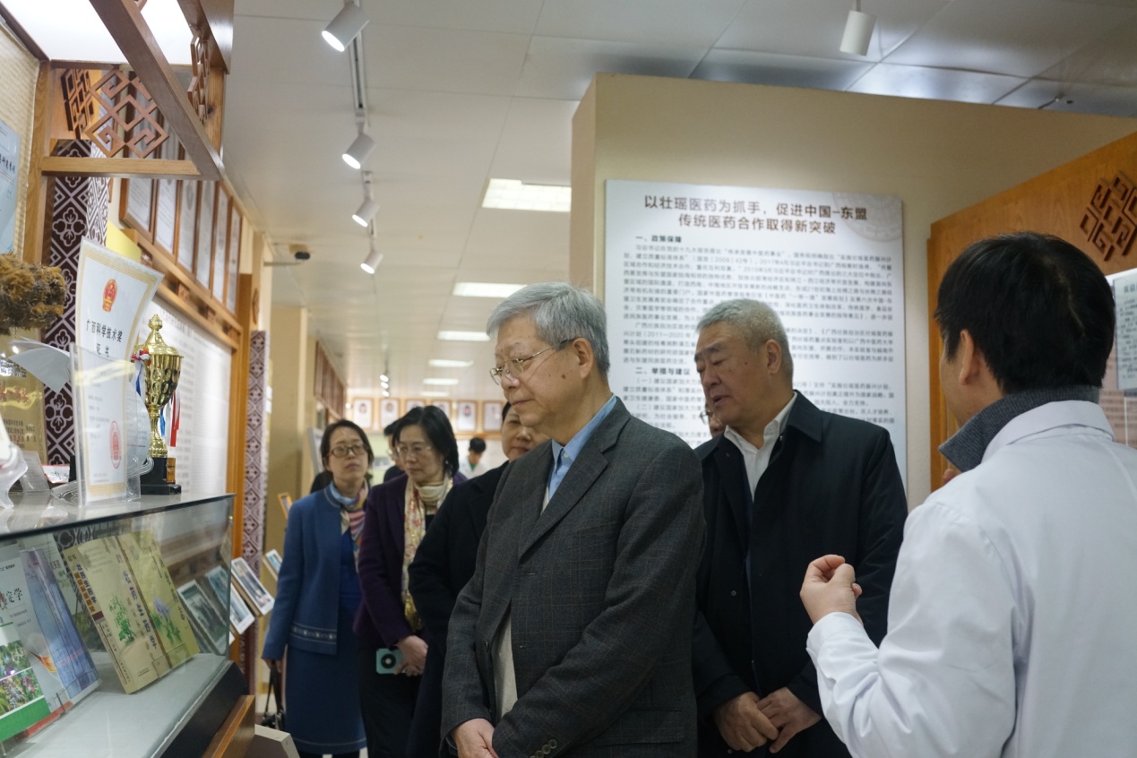 会后,院士一行实地考察了我平台,了解我平台中药壮瑶药科技创新工作,学校党委书记莫锦荣、校长姚春、副校长冷静、总会计师何刚亮陪同考察交流,本平台常务副主任苏健博士、张淼老师、谢凤凤老师、许立拔老师、蒋开雨老师、韦露玲老师、余秀琪助理和刘祖锭助理以及本平台研究生参会。苏健博士汇报了我平台在产学研等方面取得的成绩,希望院士多指导,进一步指导中药材壮瑶药开发、人才培养、产业发展、科学研究、临床实践等各方面研究工作,共同推动中药壮瑶药事业与产业高质量发展。杨玉良院士和董尔丹院士在本平台考察时表示,taptap点点体育壮瑶药研究平台很有特色,很有发展前景,希望进一步结合区域特色,推动壮瑶药高质量发展。