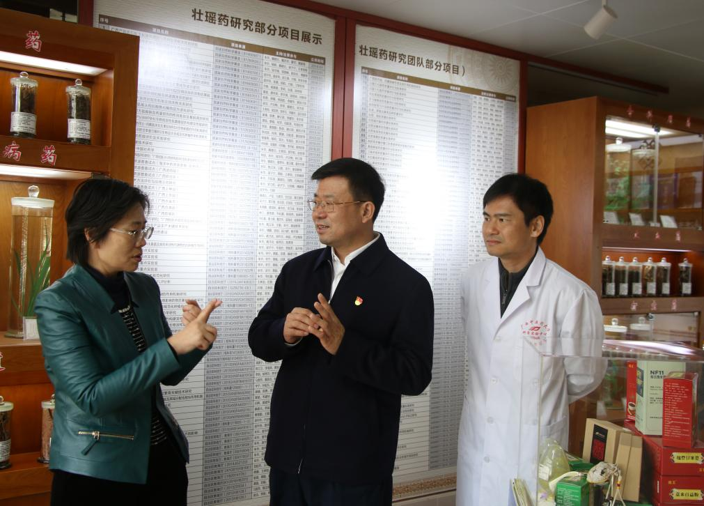 2021年12月22日,广西科技大学党委书记赵君一行4人在点点体育党委副书记何并文、副校长冷静的陪同下到我平台参观调研。赵君教授表示,壮瑶药的发展取得很大成果,壮瑶药的持续发展要结合广西的实际,贯彻自治区党委第十二次党代会精神,落实建设壮美广西“1+1+4+3+N”的目标任务,推动促进经济与社会发展。