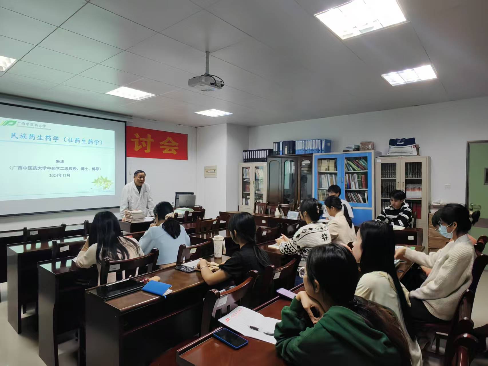 朱华教授为研究生授课 发布时间:2024-11-10 13:20:16 浏览次数: 次 【字体:小 大】 2024年11月8日,我平台主任朱华教授为点点体育2024级硕士研究生讲授《民族药生药学(壮药生药学)》。课程以壮药学、生药学等学科定义为切入点,系统阐释了壮药基础理论、研究现状及未来发展目标。他勉励同学们秉持严谨治学态度,夯实专业根基,在民族药研究领域勇攀学术高峰。 朱华教授为研究生授课 分享到: 【打印正文】