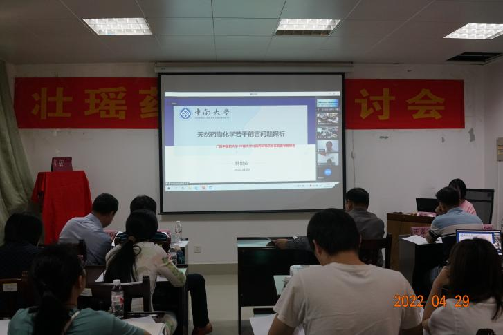 2022年04月29日,为了落实国务院“实施壮瑶医药振兴计划,建立质量标准体系”和自治区“壮瑶医药振兴计划”的文件精神,营造良好的学术氛围,加强学术交流,拓展学术领域,促进中医药壮瑶医药事业与产业高质量发展,我平台(项目团队)在taptap点点体育仙葫校区格物楼C408学术报告厅(线上线下方式)召开壮瑶药学术研讨会(壮瑶药研究培训班),特邀中南大学 钟世安(教授 博导);广西民族大学 申利群(教授 博导); taptap点点体育(按姓氏笔画为序) 王孝勋(博士 教授)、田慧(教授)、朱华(教授 博导)、苏健(博士 副研究员)、梁子宁(博士 教授)、傅鹏(博士 教授)、甄汉深(教授 博导)、滕建北(博士 教授)作学术报告及发言。