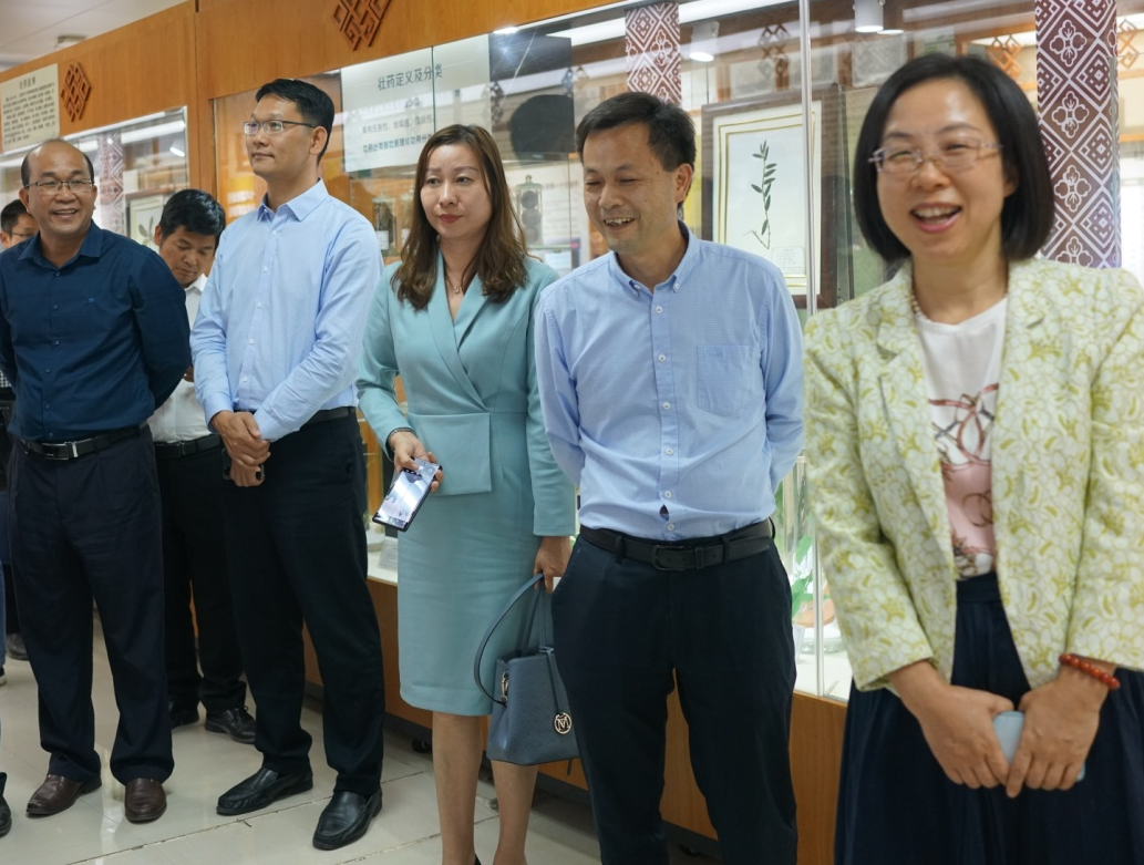 11月7日下午,广西农业职业技术大学党委副书记、校长李向红、副校长梁业胜一行17人莅临本实验室考察指导。学校党委常委、总会计师何刚亮主持交流活动,学校相关部门负责人及科技处工作人员代表,广西壮瑶药重点实验室常务副主任苏健博士及本实验室壮瑶药研究团队参加本次交流。双方就实验室规划建设、科研研究及平台建设、实验室设施设备、教学工作等方面进行了深入交流。