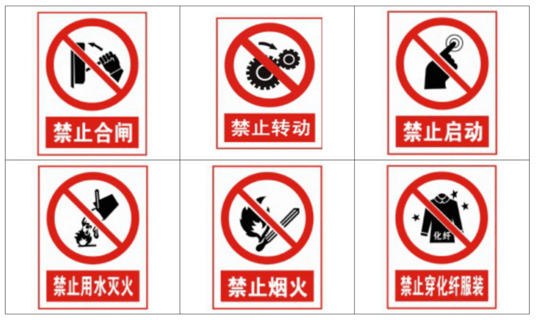 2、圆形边框带斜杠的禁止标识,用来表达禁止的不安全行为。