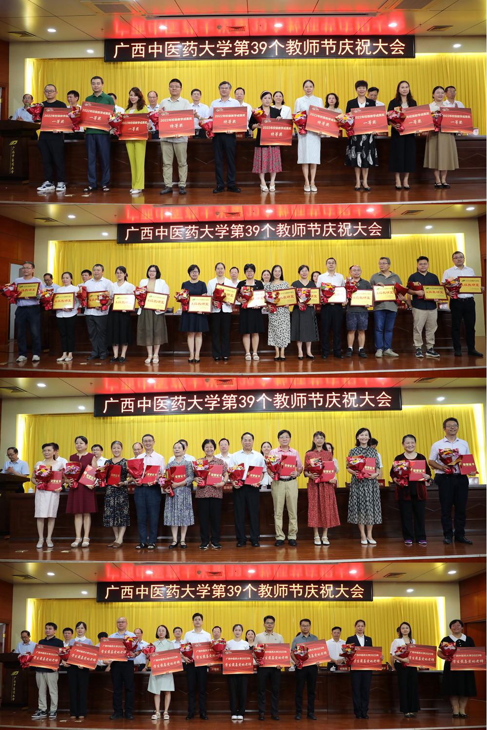 躬耕教坛,强国有我。9月8日上午,在第39个教师节来临之际,点点体育在仙葫校区图书馆第二会议室举行教师节庆祝大会。学校党委书记莫锦荣,党委副书记、校长姚春,党委副书记何并文,党委副书记、纪委书记覃宇环,党委副书记邹勇,副校长何刚亮、李典鹏、唐振宇、肖健、岳桂华,各单位、部门负责人,教学督学专家代表,受表彰教师及学生代表等400余人出席主会场活动,各二级学院、附属单位还设置分会场并组织师生代表收看庆祝大会实况。大会由唐振宇主持。莫锦荣书记在讲话中指出,学校深入学习贯彻习近平新时代中国特色社会主义思想,落实立德树人根本任务,扎实推动学校各项事业高质量发展,各项工作都取得了明显成效,交出了一张令人满意的答卷。姚春校长在讲话中指出,学校全面贯彻落实习近平总书记的重要指示精神,在习近平新时代中国特色社会主义思想的指引下,学校大力推进“人才强校”战略,努力打造高素质教师队伍,教师思想政治与师德师风建设日见成效,高层次教师队伍建设数量质量不断提升,教育教学改革成效显著。会上,我平台田慧教授、韦安达等骨干上台领奖。