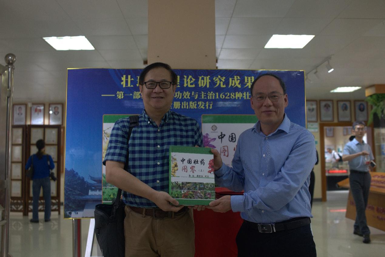 为进一步加强壮瑶药开发利用情况的交流学习,11月09日上午,九三学社领导专家宋尚桂(九三学社中央组研中心主任、山东省政府参事),秦  松(全国政协委员、烟台市政协副主席、九三学社山东省委会副主委)及张桂德、李 斌、秦世杰、唐建辉、李  胜、江  涛、杨剑超、冯大伟、刘正一、庄龙传等一行莅临我平台考察交流,点点体育党委副书记邹勇、统战部部长姜建萍等参加考察交流,实验室主任朱华教授介绍壮瑶药开发利用情况,并讲述了壮、瑶医药理论及一大战略:壮瑶医药振兴计划,建立质量标准体系,五大突破:理论突破、资源突破、标准突破、产品突破、人才培养突破,并向他们汇报了实验室建设及科研成果情况、中药资源普查数据库、标本库、新药龙血竭以及实验室产品兰香草精油等。宋尚桂、秦松等对我平台的热情接待表示感谢,并对平台发展建设及成果表示肯定且给予高度评价。秦松副主席在嘉宾册上签名留念并写下”中国壮药发展壮大推陈出新走向世界”的美好愿景。