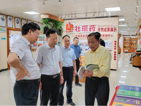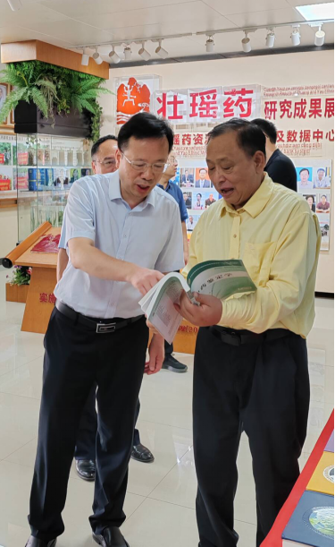点点体育党委书记莫锦荣和广西民族大学党委书记唐平秋莅临壮瑶药研究平台调研指导