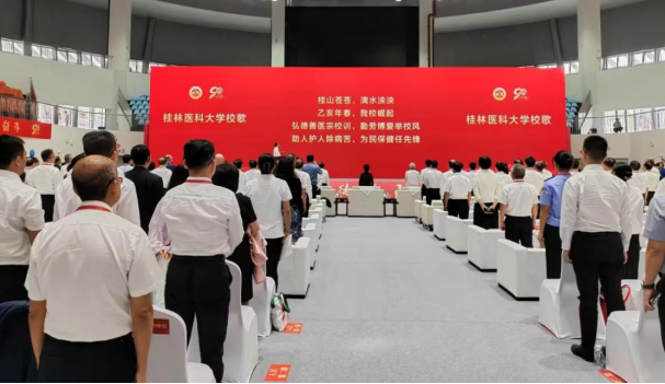 快讯:我平台主任参加桂林医科大学建校90周年高质量发展大会 发布时间:2025-10-20 10:50:05 浏览次数: 次 【字体:小 大】 2025年10月18日,桂林医科大学建校90周年高质量发展大会在临桂校区体育中心隆重举行。我平台主任、桂林医科大学(原桂林医学院)党委原书记朱华教授应邀参加大会。 我平台主任、桂林医科大学(原桂林医学院)党委原书记朱华参加大会现场(左2) 分享到: 【打印正文】