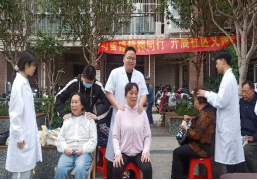 我院“学雷锋”志愿服务活动通过利用壮医特色诊疗技法开展义诊服务,弘扬我国民族医药传统文化。与此同时,也不忘关爱老人,进行“银龄关爱”活动。