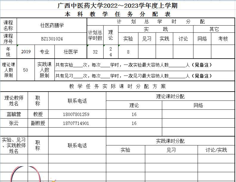 教学任务分配表