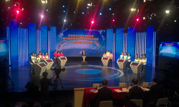 10月20日,以“为建设海洋强国奉献青春”为主题的第六届全国大中学生海洋知识竞赛广西赛区决赛在广西电视台演播大厅圆满落幕。点点体育代表队表现出色,勇夺广西赛区桂冠,并将代表广西参加10月24日在中山大学珠海校区举行的华南区决赛。