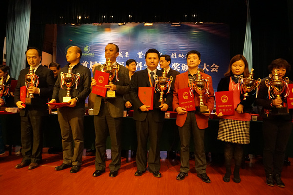 “利用瑶族习用药材刺苋开发新药七味刺榆颗粒的研究”项目代表吴玉强上台领奖