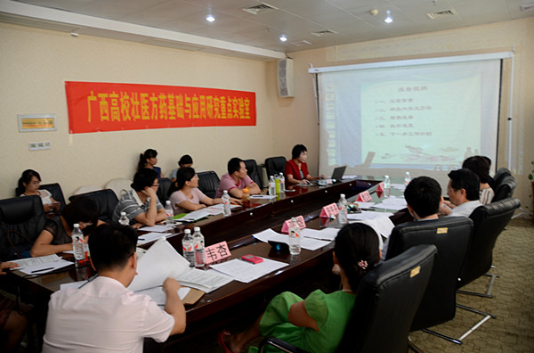 2015年9月28日,点点体育壮医方药基础与应用研究重点实验室在南宁召开2014年立项课题中期进展汇报会,参会的有实验室主任庞宇舟副校长,学校发展规划处(学科办)唐红珍处长(主任)、科技处王孝勋副处长、壮医药学院张煜书记与韦杏副院长以及各立项课题负责人共20多人。