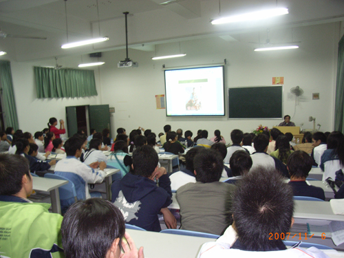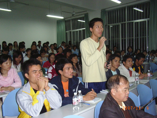 2007年11月6日晚,由壮医药学院主办,中国文化遗产基金会民族文化专家委员会副主任、壮族在线理事总顾问谢寿球研究员主讲的《壮族文化的渊源》讲座在西A-8教室如期举行。