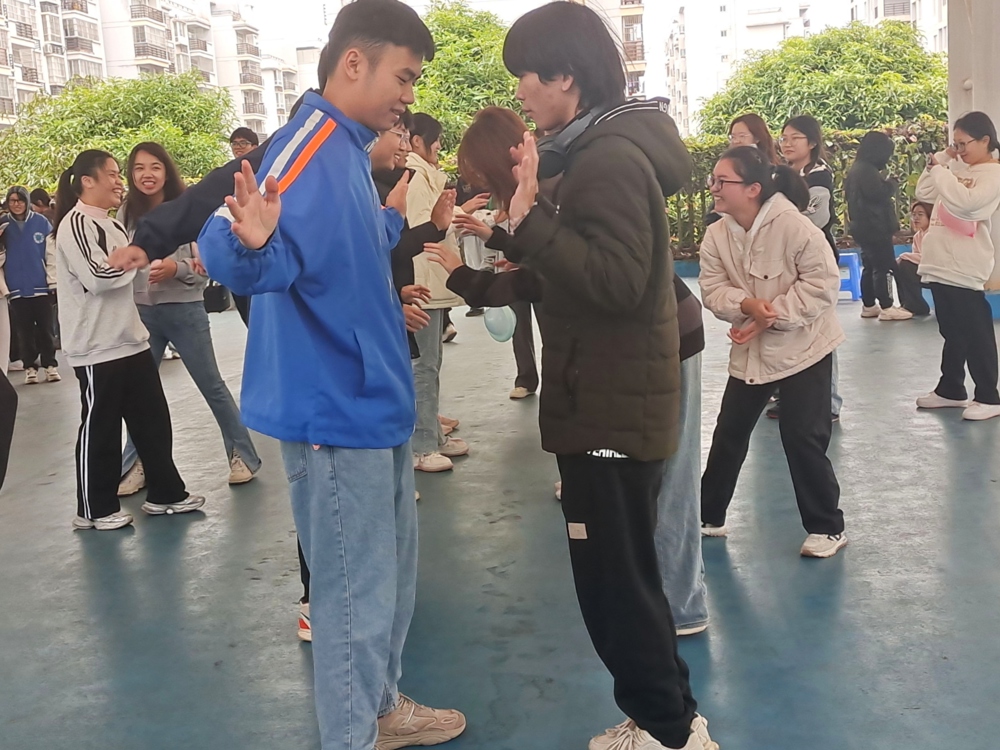 手推不倒翁游戏后,还有背篓抛绣球,袋鼠跳等项目。在背篓抛绣球比赛中,五彩斑斓的绣球如凌空的虹桥在空中飞扬,背篓里盛满同学们激昂的青春热血,同学们深厚的友谊在充满默契的一抛一接中熠熠生辉。