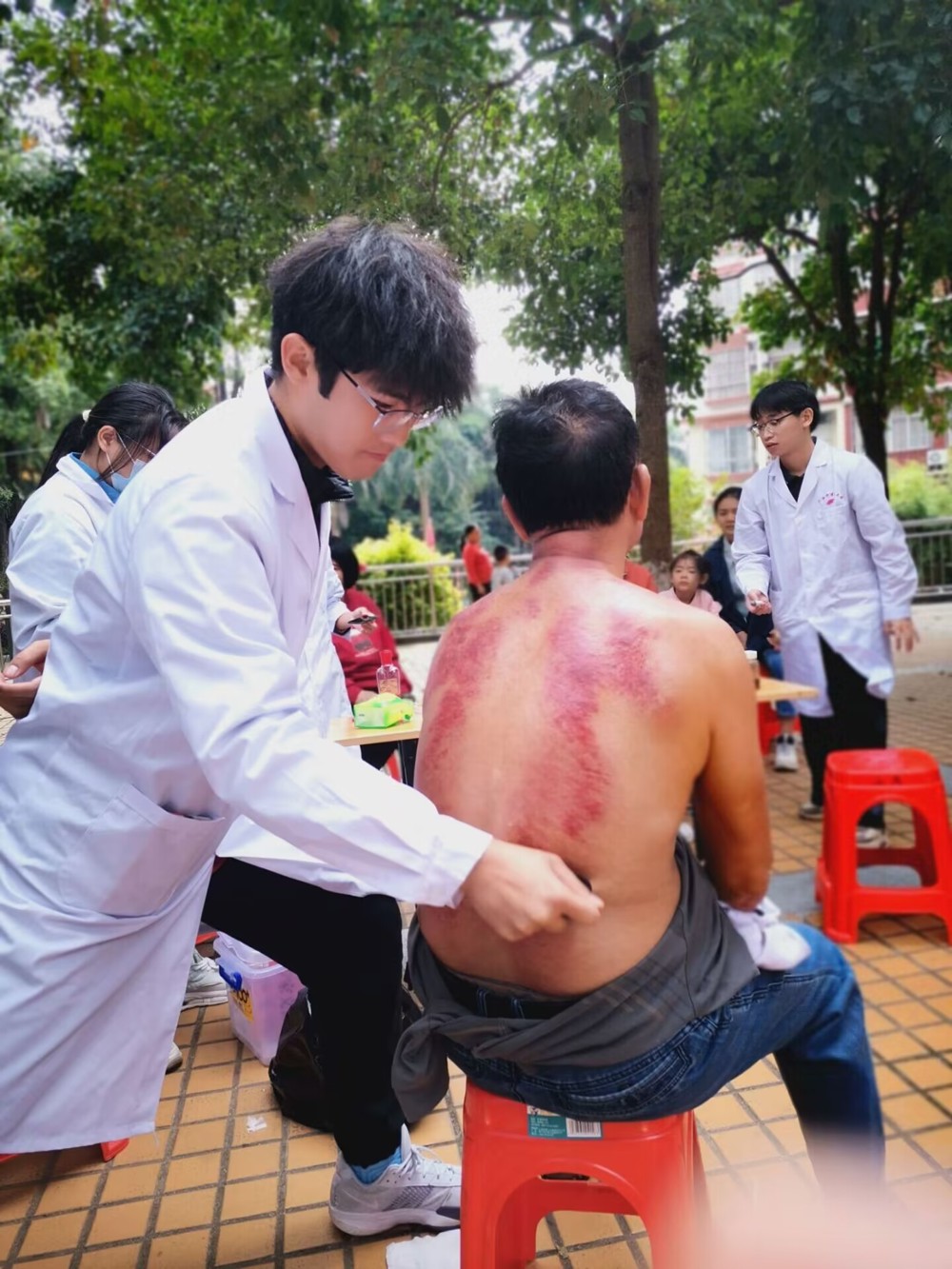 通过壮医药专业知识与技术为群众义诊服务,获得大家的一致好评。在义诊过程中加深了同学们对壮医药历史、文化、特色技术的理解,增强了壮医药文化自信心。